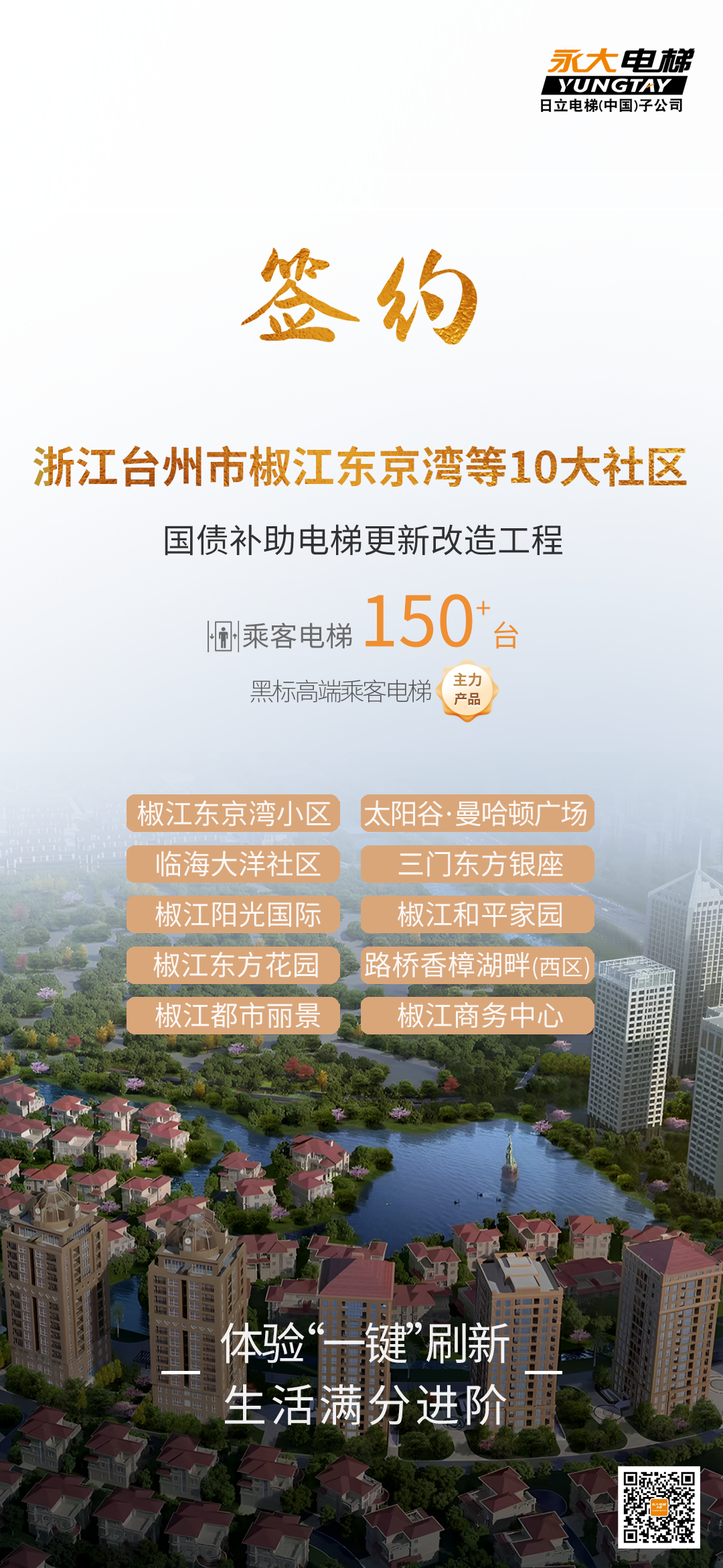 在此过程中,永大电梯积极参与并协助开展政策解读与改造方案规划,成功签约并参与到10个社区的电梯更新工程,累计150+台。本次联动有力推动了台州地区成片式、规模化老旧电梯焕新实践,为城市居住安全与品质提升贡献永大力量。
