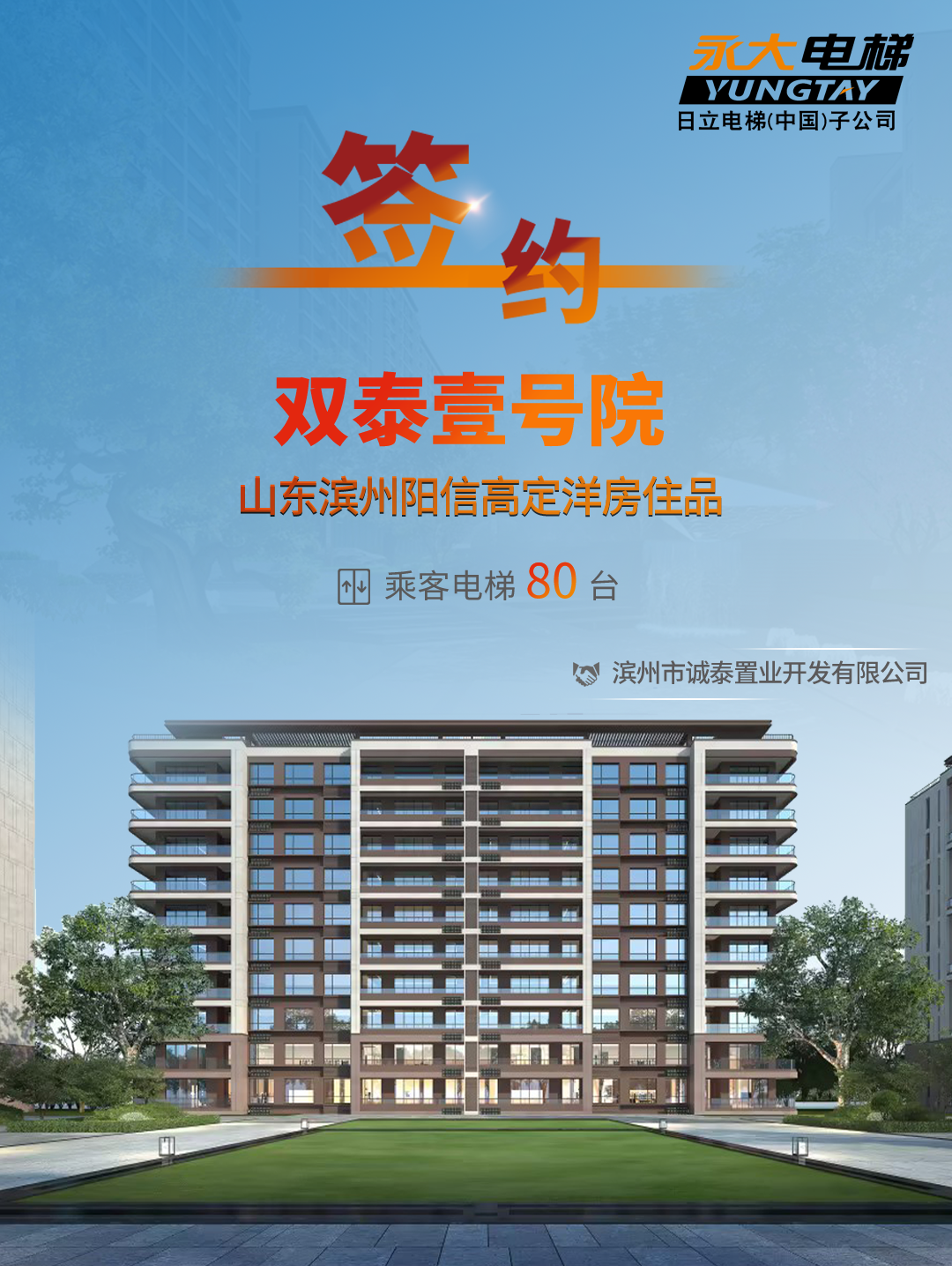 高品味生活,离不开高品质交付;永大电梯携手滨州双泰壹号院启程美好城市生活!